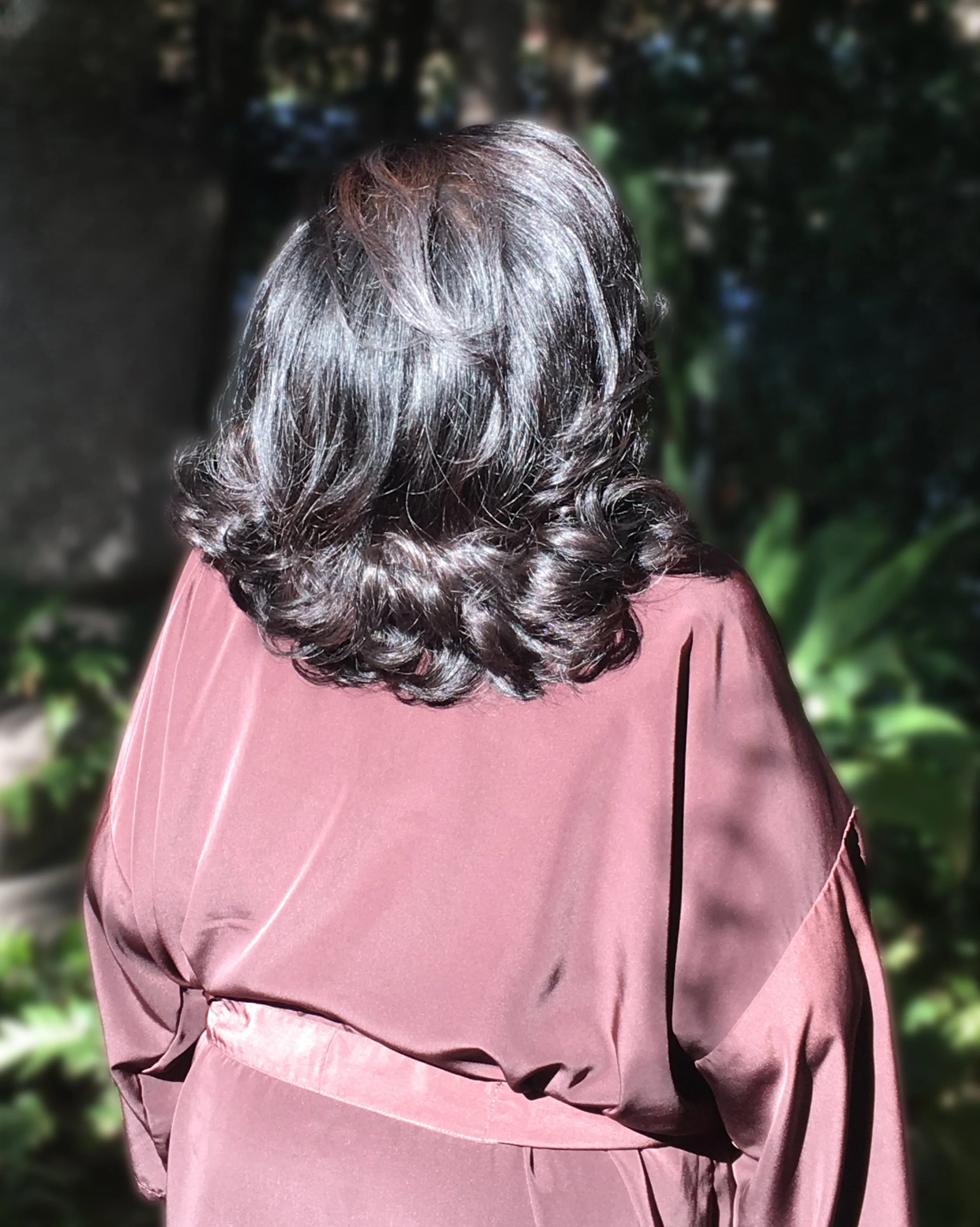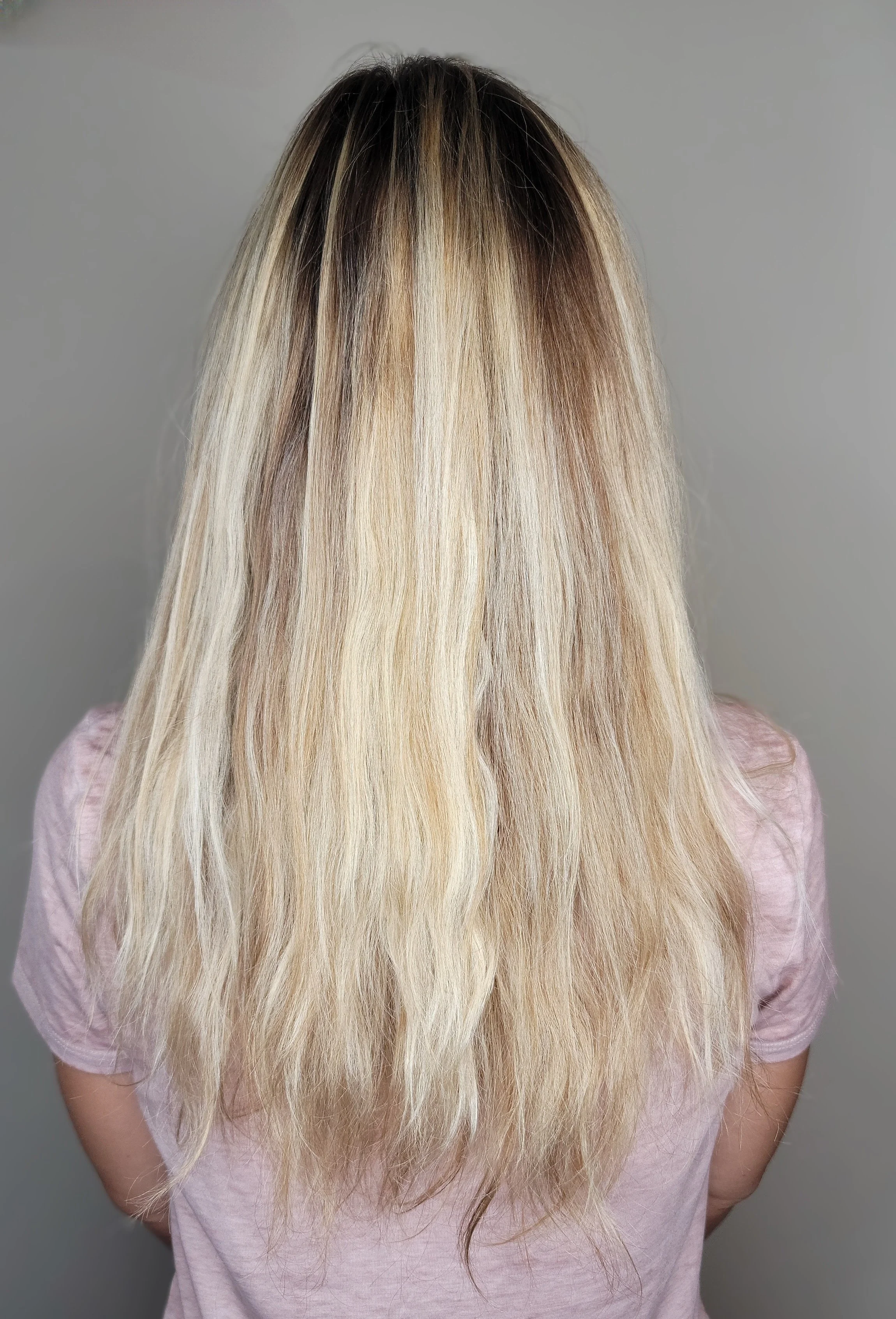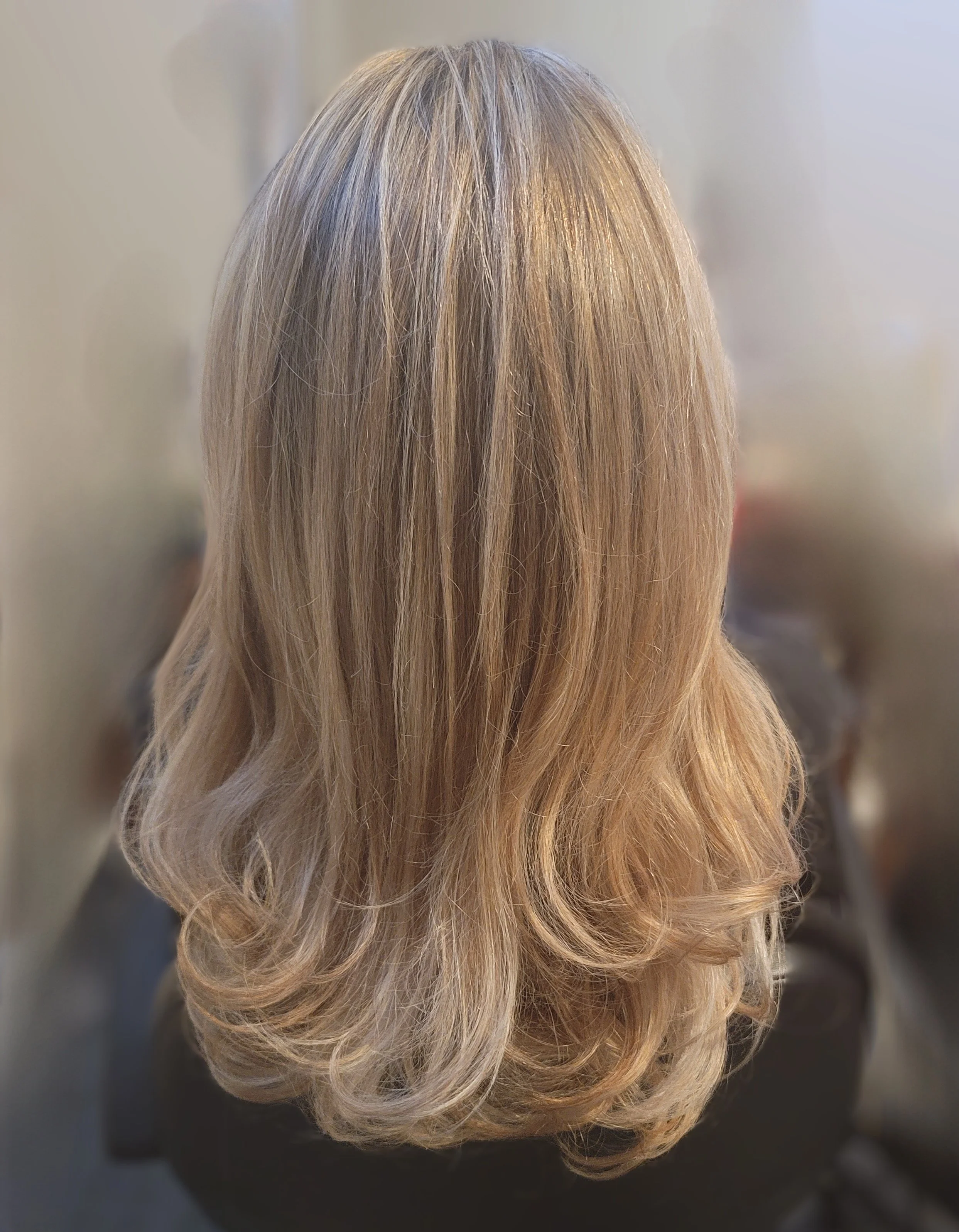 Just one week later, she was ready to go lighter. Once again, we achieved a luminous transformation—still without using bleach.